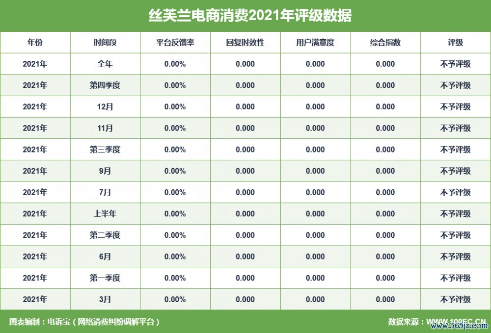 酬金表示了2021年五家品牌电商公司数据与典型案例。其中,2021年 “丝芙兰”共得回12次耗尽评级,均获“不予评级”。同期,“丝芙兰”存在调遣货难、发货问题、售后干事、商品性量等问题。