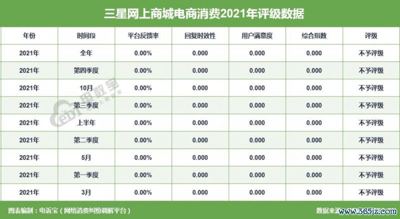 2021年“三星网上商城”共得回9次耗尽评级,均获“不予评级”。同期,“三星网上商城”存在放荡促销、退款问题的问题。
